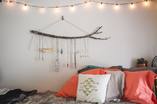 Today, I decided to put my energy toward shooting my last dorm room! Shout out to my dad for helping me make my branch dreamscape true! He put nails in this branch I found in the summer that I had saved to use to hold jewelry! Another shout out to my mom for donating this cute little copper succulent! Excited for all of the new things coming my way this year! :)